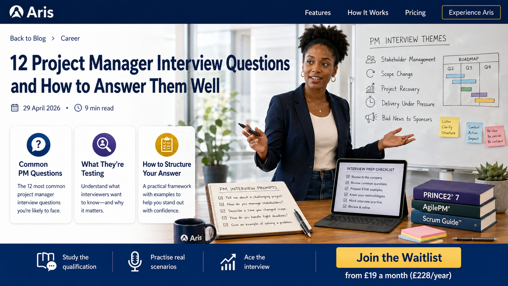 That's the gap we built Aris to close. As well as teaching the qualifications, Aris walks you through voice-based simulations of the situations PM interviews actually test you on. The senior leader you have to push back on. The sponsor you have to deliver bad news to. The team member who isn't pulling their weight. You practise the conversation, Aris scores you, then you do it again. The version of you who walks into the interview is the one who's already had the difficult conversation a few times. Hiring managers can hear the difference.